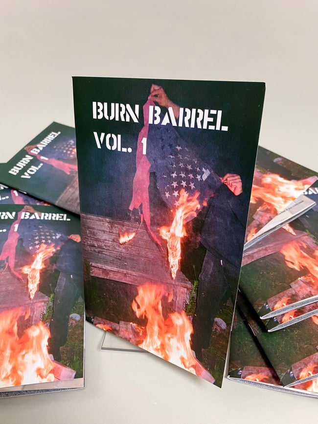 Burn Barrel Volume 1 group photo zine. Proceeds benefit unhoused and displaced people in New Orleans & Los Angeles. Sixty-four pages, full color, full-bleed. Images from over 25 photographers including Andrae Steed, Angela Boatwright, Annie Flanagan, Beau Patrick Coulon, Bill Daniel, Brad Westcott, Brandon Lattimore, Chris Berntsen, Hanna Quevedo, Jake Swanson, Jeff Schwilk, Jenna Tuttle, John Kilar, Kat Contreras, Kemal Cilengir, Kenneth Owens, Merrick Morton, Mike Brodie, Mikey Riley, Alex Povey, Sarrah Danziger, Sloane, Suitcase Joe, Tod Seelie, and Zibby Jahns